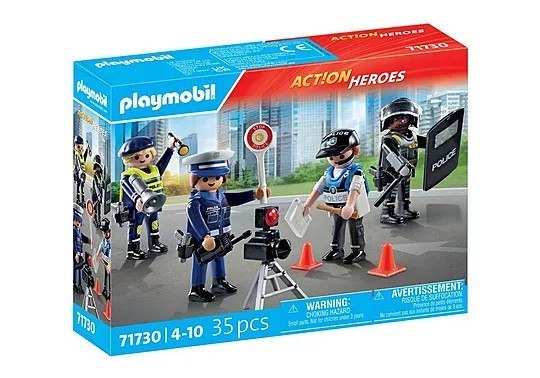 Zanurz się w pełne akcji policyjne przygody z tym wyjątkowym zestawem figurek policjantów PLAYMOBIL! Dzięki czterem funkcjonariuszom i wielu realistycznym akcesoriom, takim jak kabury, megafon i tarcza policyjna, możliwości pomysłowej zabawy będą nieograniczone. Stwórz swoim funkcjonariuszom niesamowite misje i kryminalne zagadki używając dołączonych akcesorii, takich jak migacz radarowy i latarka.