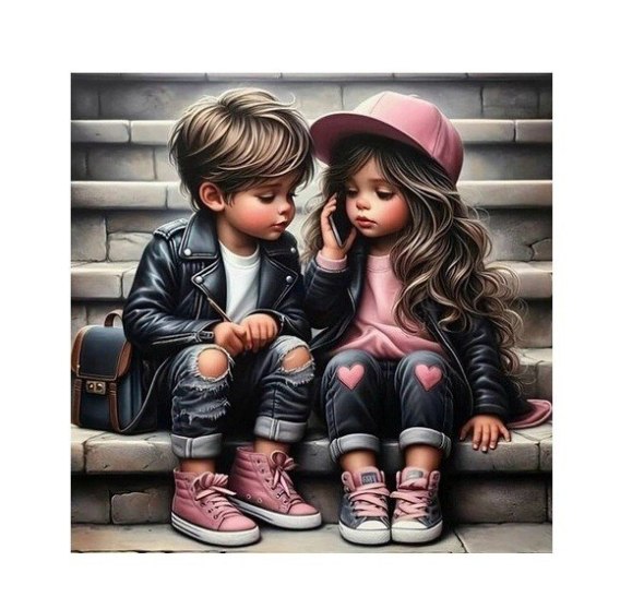Diamentowa mozaika - Dziewczynka i chłopiec na schodach