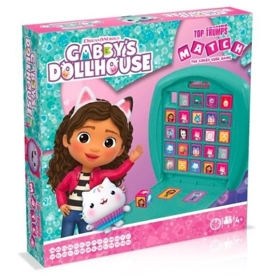Celem gry TOP TRUMPS Match Koci Domek Gabi jest ułożenie 5 jednakowych kostek w rzędzie pionowym, poziomym lub na ukos. Przed rozpoczęciem rozgrywki rozdaj każdemu graczowi po dwie karty z postaciami. Karty drugiego gracza powinny pozostać nieznane! Rozgrywkę rozpoczyna młodszy gracz, wypychając kostkę w lewym górnym rogu planszy. Drugi gracz, używając kostki, która wypadła na jego stronę, wypycha kolejną. Gracz, który ułoży jednolity rząd pionowy, poziomy lub ukośny - wykrzykuje MATCH i wygrywa. Uwaga! Zwycięstwo może zostać przejęte, jeśli przeciwnik dysponuje kartą z ułożoną postacią.