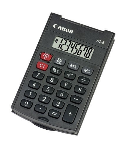 8-cyfrowy kalkulator Canon AS-8 można zabrać z sobą wszędzie i natychmiast wykonywać szybkie obliczenia. Dzięki zakrzywionej konstrukcji kalkulator doskonale leży w dłoni, zaś odchylana pokrywa obracająca się o 360 stopni dba o jego bezpieczeństwo.