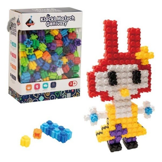 Zestaw Klocków Małych Geniuszy (310 elementów) to fantastyczna zabawa dla dzieci, które lubią tworzyć, eksperymentować i konstruować. Klocki mają charakterystyczny, blokowy kształt, dzięki czemu łatwo się ze sobą łączą i pozwalają na budowanie najróżniejszych konstrukcji - od zwierzaków i robotów po budynki i pojazdy.
