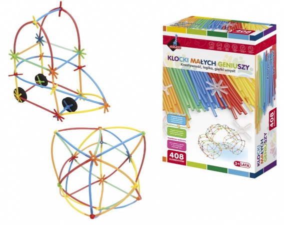 • Klocki - patyczki - słomki w rozmiarze midi, które za pomocą krzyżaków - kwiatków, można łączyć w różne figury.