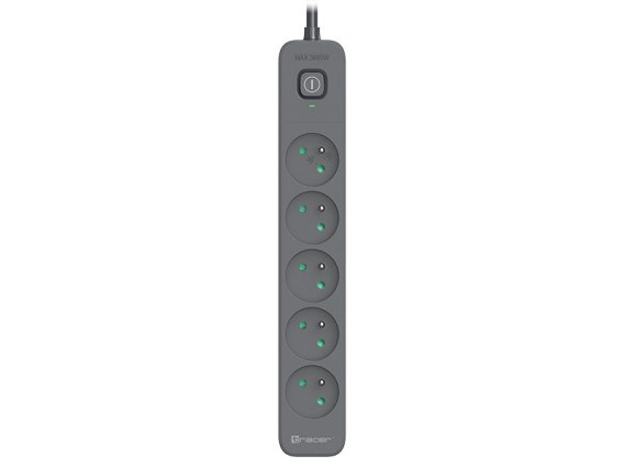 Listwa zasilająca antyprzepięciowa TRACER Power Line+ 3,0 m Graphite (5 gniazd)