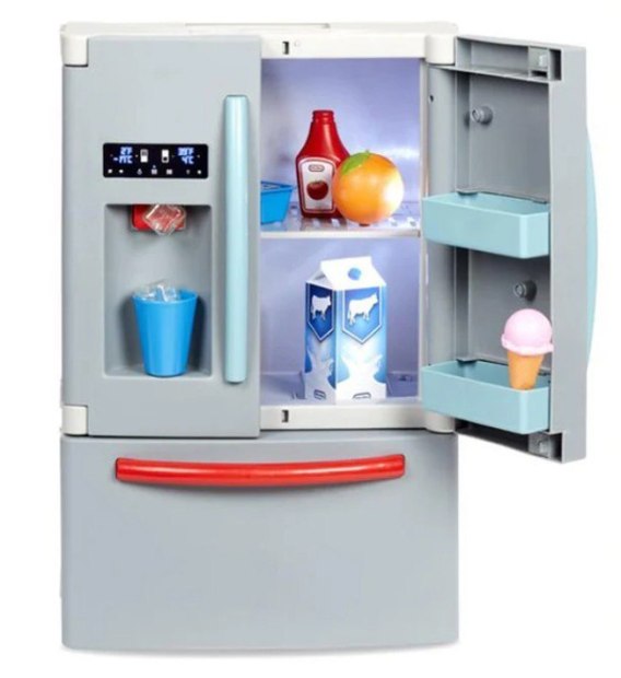 Pozwól swojemu maluchowi uwierzyć, że gotuje i porządkuje się jak dorosły dzięki pierwszej lodówce Little Tikes! Ta nowoczesna i realistyczna lodówka do zabawy zawiera interaktywne elementy, takie jak działający dozownik lodu, podwójne francuskie drzwi, oddzielna szuflada zamrażarki i wewnętrzne oświetlenie lodówki, które zapewniają wciągające wrażenia z odgrywania ról.