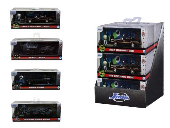Metalowe pojazdy z filmów o Batmanie. W kolekcji 6 pojazdów. Do zestawu dołączona jest figurka bohatera. Każdy pojazd posiada otwierane elementy. Pojazdy bez napędu.