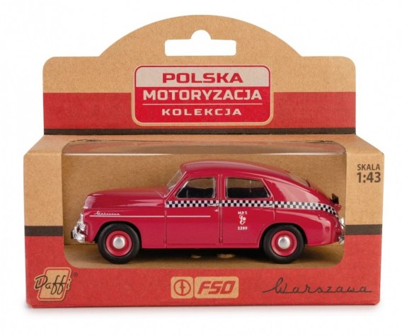 Pojazd PRL Warszawa M20 taxi wiśniowy