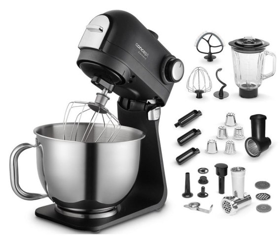 Robot oferuje pięć poziomów prędkości oraz praktyczną funkcję PULSE, która zapewnia maksymalną moc w kilka sekund - dokładnie wtedy, gdy jej potrzebujesz. Mocny silnik o mocy 1200 W z łatwością radzi sobie nawet z ciężkimi ciastami. O bezpieczeństwo dba blokada, która uniemożliwia uruchomienie robota, jeśli nie został prawidłowo złożony. Konserwacja jest prosta - wystarczy przetrzeć urządzenie wilgotną ściereczką, mieszadła i misę można myć w zmywarce, a pozostałe części umyć w ciepłej wodzie z detergentem i dokładnie osuszyć.
