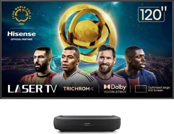 "HISENSE LASER TV 4K to unikalne połączenie projektora 4K krótkiego rzuty z funkcjami TV na ekstremalnie dużym ekranie, który idelanie wpasuje się w Twój salon.Dołączony w zestawie 120-calowy ekran ALR jest w pełni antyrefleksyjny i zapewnia brak odbić świetlnych, dzięki czemu możesz cieszyć się ogromnym telewizorem w dowolnym pokoju niezależnie od warunków świetlnych za oknem."